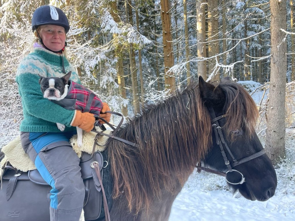 Tänkte mamsentramsen och bjöd hunden Loulou att få vara med. Hon var måttligt road så det blev några steg i skritt.