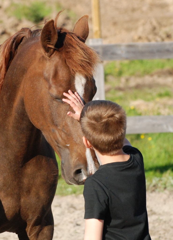 Vid autism jobbar vi på kontakt och ömsesidighet med varandra och hästen. Vi klappar hästen, känner av den, lär oss umgänget. Utmanar sinnena genom känsel och lukt.